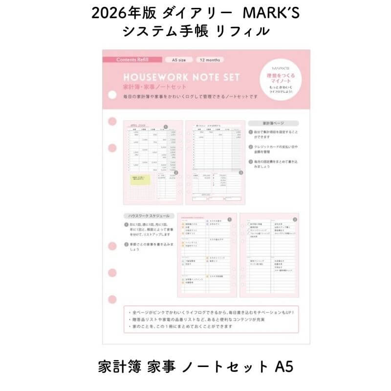 MARK’S,マークス,システム手帳,リフィル,家計簿,家事,ノートセット,A5