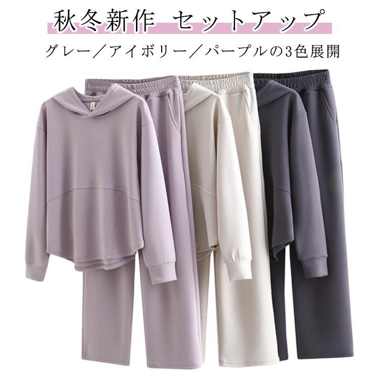 おしゃれ セットアップ スウェット セットアップ フード パーカー スウェット 運動着 部屋着 ゆったり 春新作 上下セット ロング丈パンツ トップス 春秋 レディース