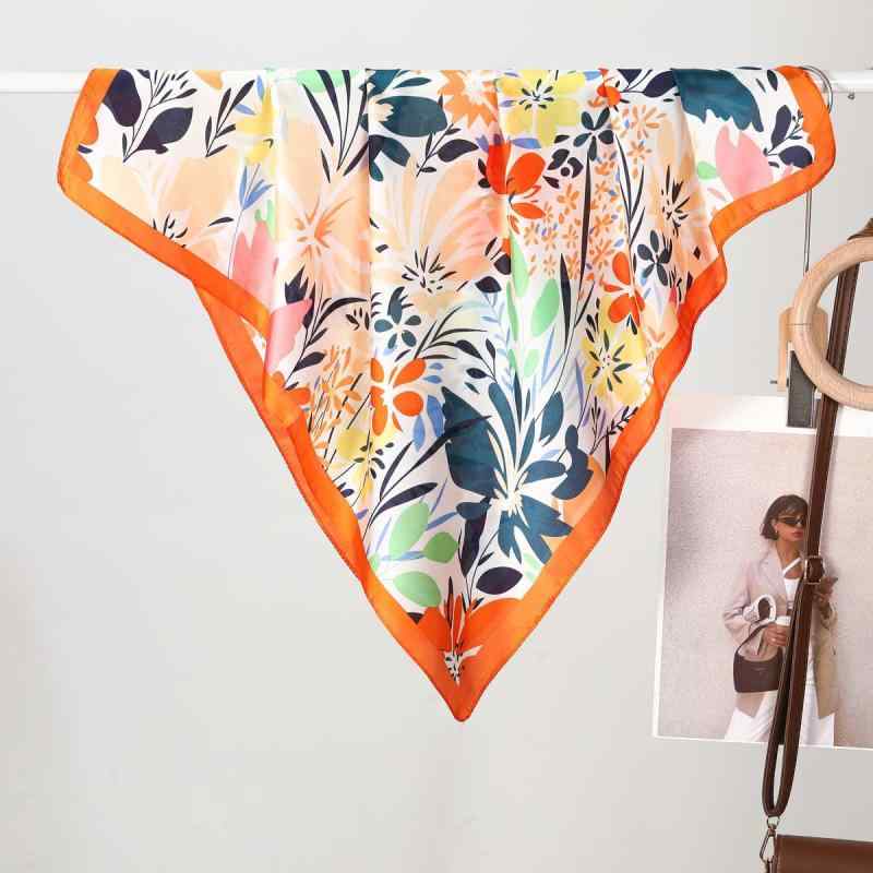 スカーフ スクエアスカーフ シルク 巻き物 巻物 花柄 ネックスカーフ バッグスカーフ バンダナ バ・・・