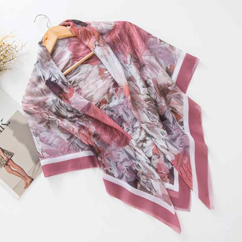 シルクタッチの上品な大判スカーフ、日焼け対策や冷房対策に。デザイン豊富でおしゃれな風呂敷としても、旅行時のコーディネートに活躍。