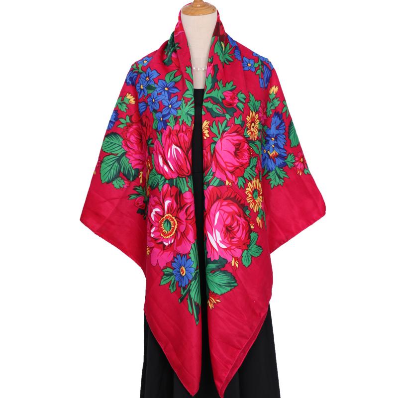 スカーフ レディース 女性用 防塵 UVカット 日よけ 保温 民族風 ロシア風 花柄 プリント 正方・・・