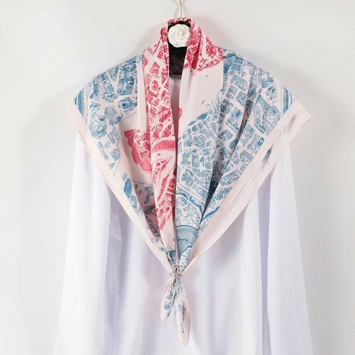 レディース 大判 シルク スカーフ 肩掛け おしゃれ 街並み アート イラスト 絵 絵画 大人 きれ・・・