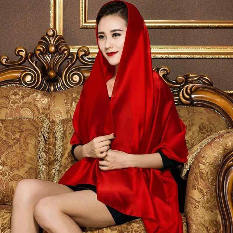 スカーフ レディース 薄手 紗 シルク 大判 正方形 春 百搭 ブラック レッド イエロー ブルー ・・・