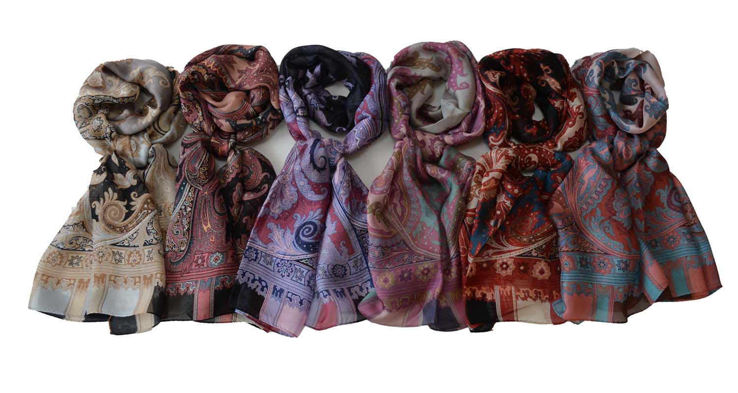 【弊社独自規格,製造,直輸入により中間マージンをカット激安にてご奉仕】 シルク100% 適度な透け感が爽やか 紗織 ゴース 大判 ロング 54CM x 164CM ペイズリー柄
