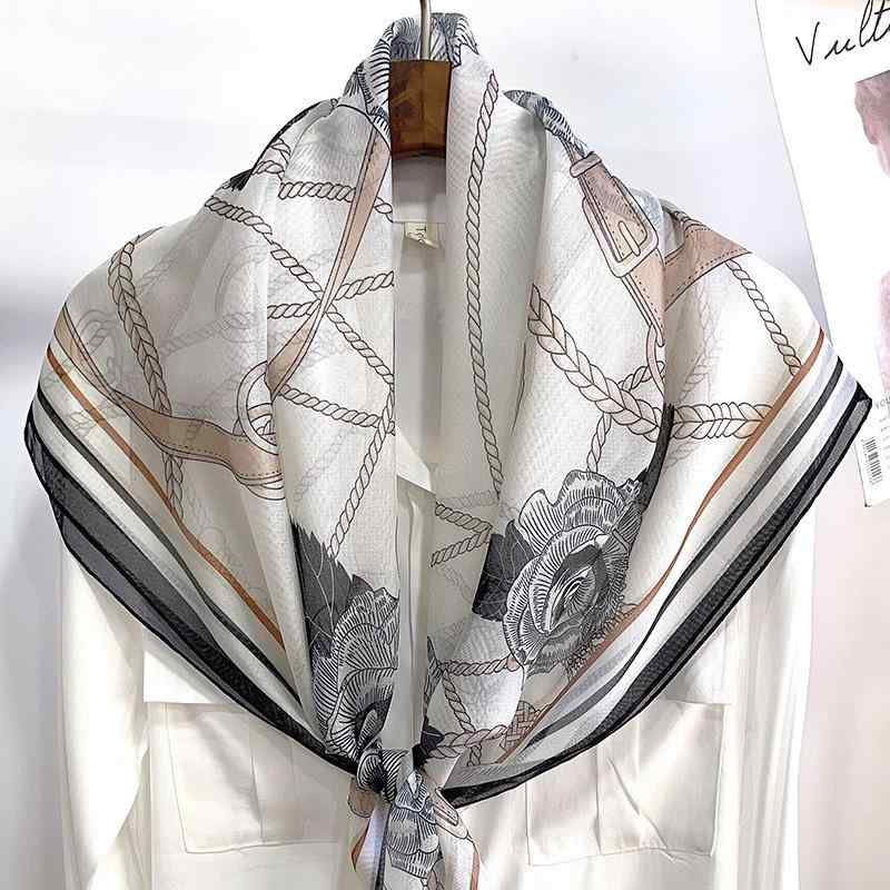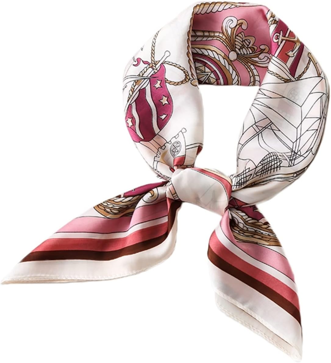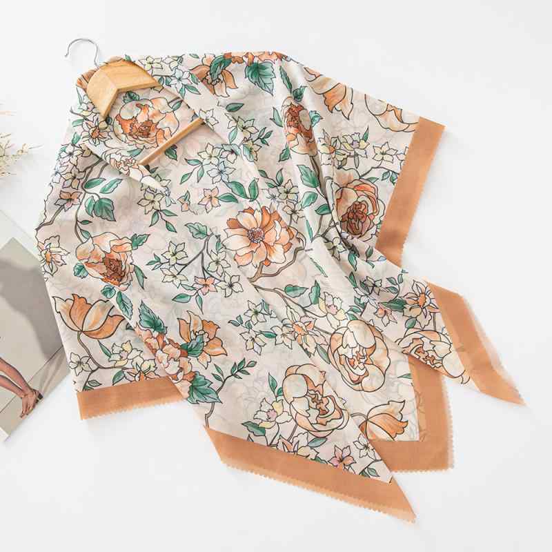 今年もスカーフは大流行!光沢があり、やや固め90cm角シルク調スカーフお勧め。