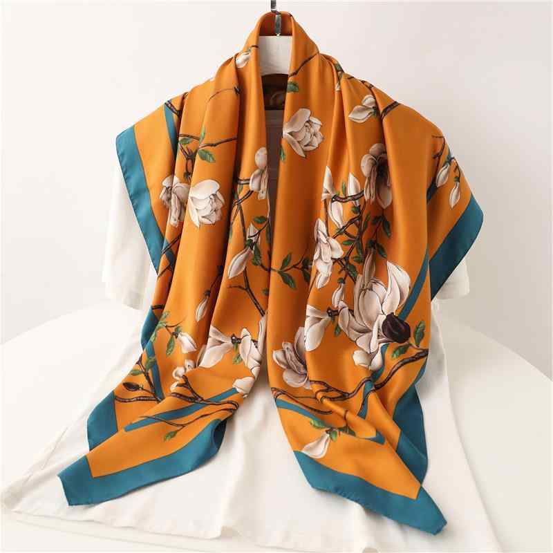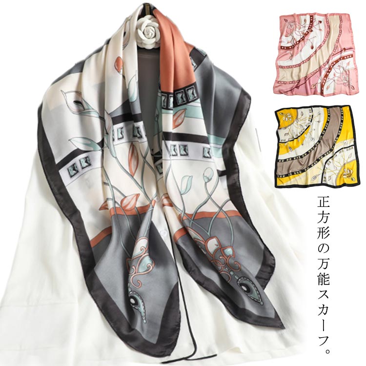 【送料無料】スカーフ 大判 90×90cm 正方形 レディース シルク調 シルクタッチ ストール 花・・・
