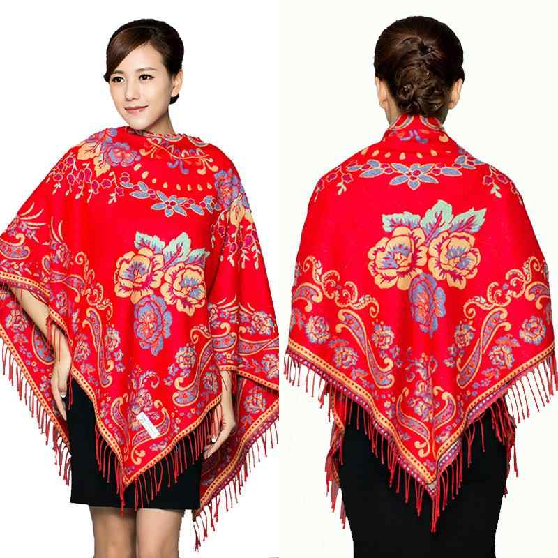 ショール レディース フェイクカシミヤ 厚手 大判 正方形 ストール マフラー スカーフ 両用 保温・・・