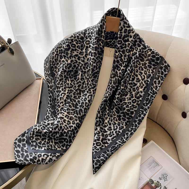 正方形 スカーフ 大判 90cm シルク調 ヒョウ柄 正方形 ストール レディース ハンダナスカーフ・・・