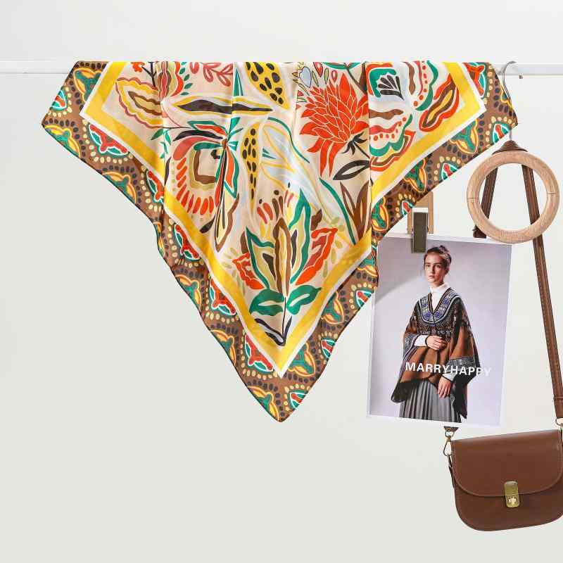 シルクタッチの上品な大判スカーフ、日焼け対策や冷房対策に。デザイン豊富でおしゃれな風呂敷としても、旅行時のコーディネートに活躍。