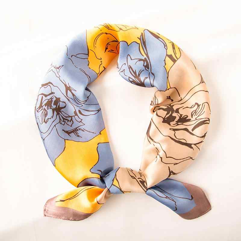 今年もスカーフは大流行!光沢があり、やや固め90cm角シルク調スカーフお勧め。