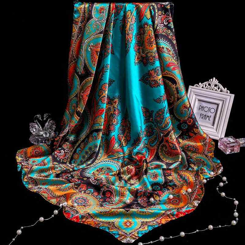 【全色60種】 華麗な高級シルク調スカーフ 90角正方形大判レディース スカーフ 贈り物 ギフト人気・・・