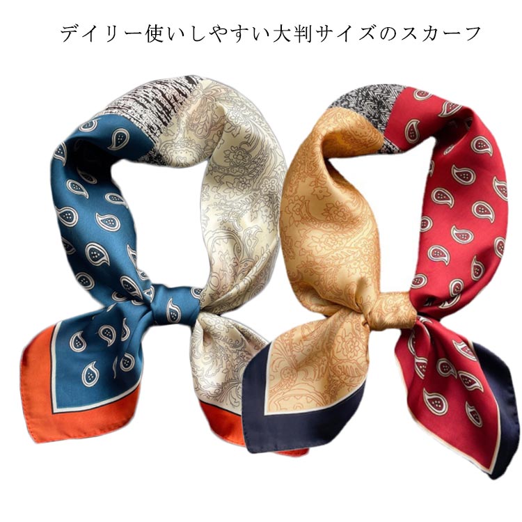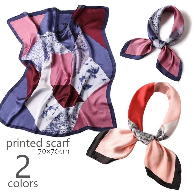 スカーフ 70×70cm レディース シルク風 ネッカチーフ 正方形 バンダナ 通勤 オフィス 旅行 ギフト