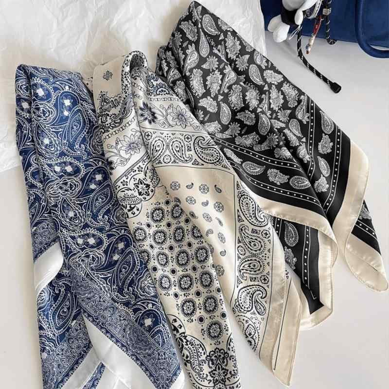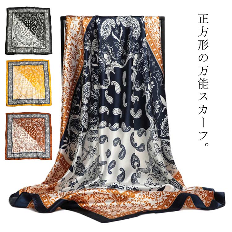 大判 レディース バンダナ柄 90cm ペイズリー ストール 正方形 シルク調 ハンダナスカーフ ヘ・・・