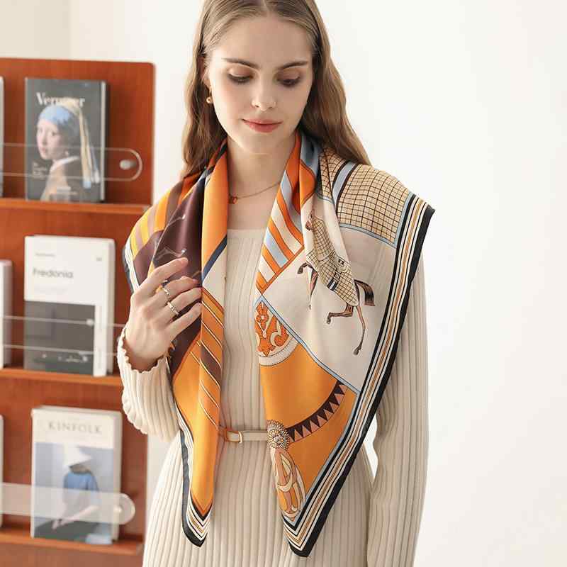 シルク タッチ 大判 スカーフ レディース 春 夏 秋 冬 用 シルク 生地 馬 馬車 柄 正方形 ・・・