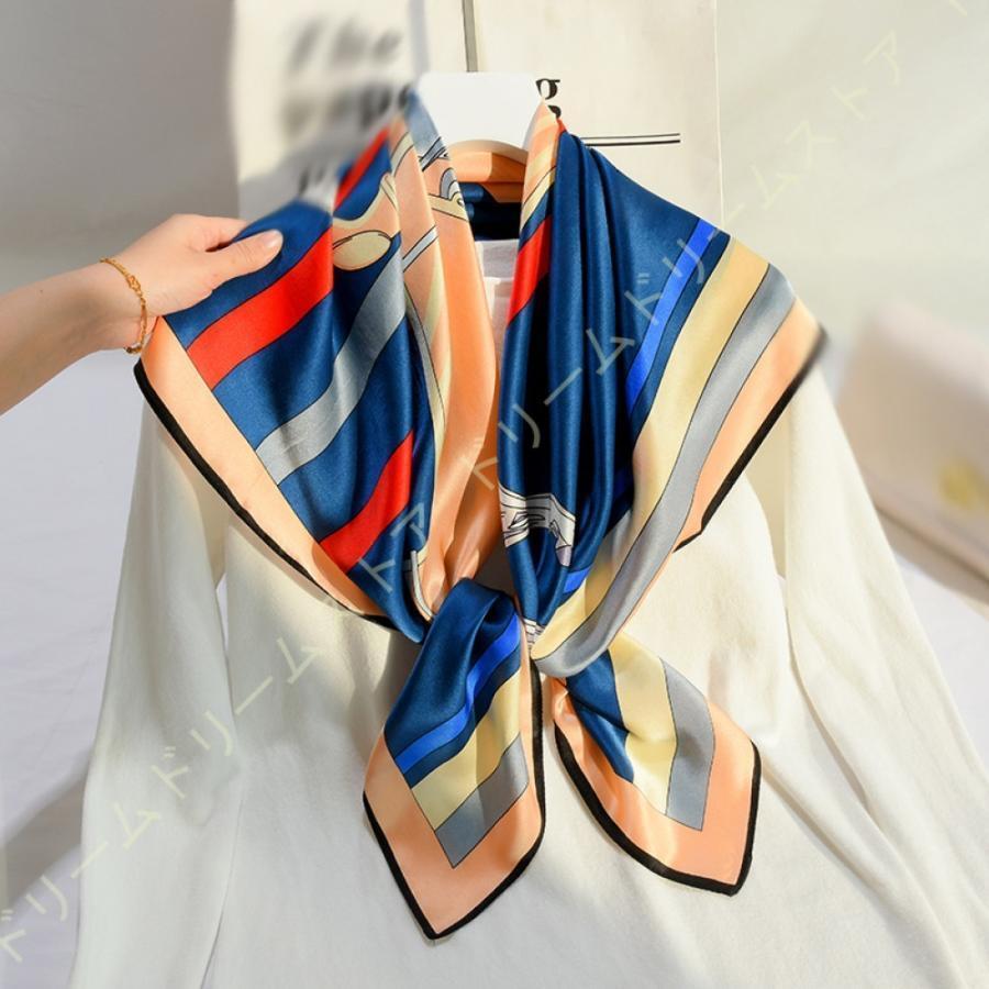 スカーフ レディース バンダナ ショール ネッカチーフ 70×70cm シルク風 お洒落 母の日 正方形 巻き方 バッグ飾り 髪飾り 春夏 海辺 旅行 通勤