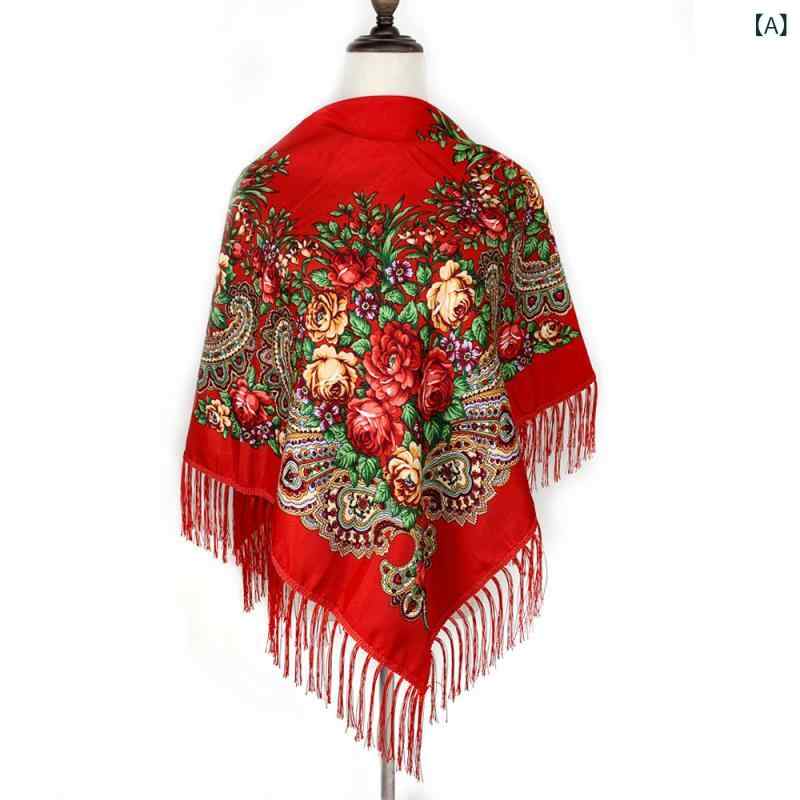 スカーフ レディース 民族調 エスニック レトロ アンティーク調 ボヘミアン フリンジ タッセル 大・・・