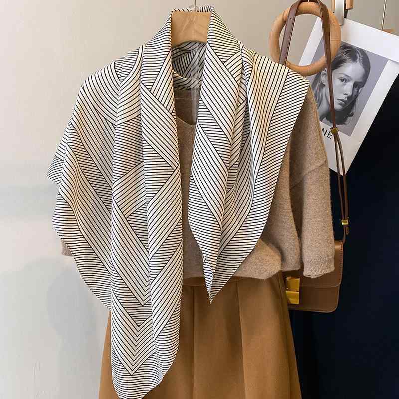 スカーフ レディース 春秋 ストライプ柄 シルクタッチ 薄手 韓国風 大判 正方形 バッグ飾り ショ・・・