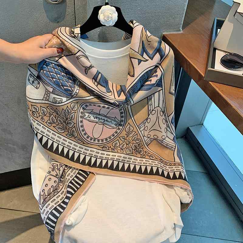 スカーフ 大判 正方形 夏 UV対策 日焼け防止 個性的 レトロ 香港風 ボヘミアン エスニック柄 ・・・