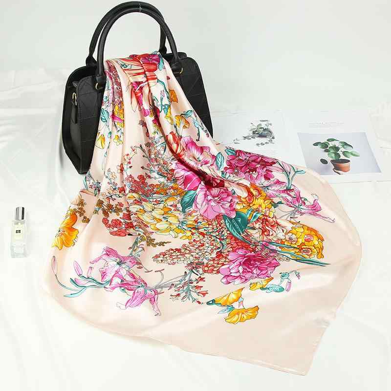 スカーフ レディース 正方形 70×70cm 花柄 フラワー サテン風 シルク調 光沢 薄手 大判 ・・・