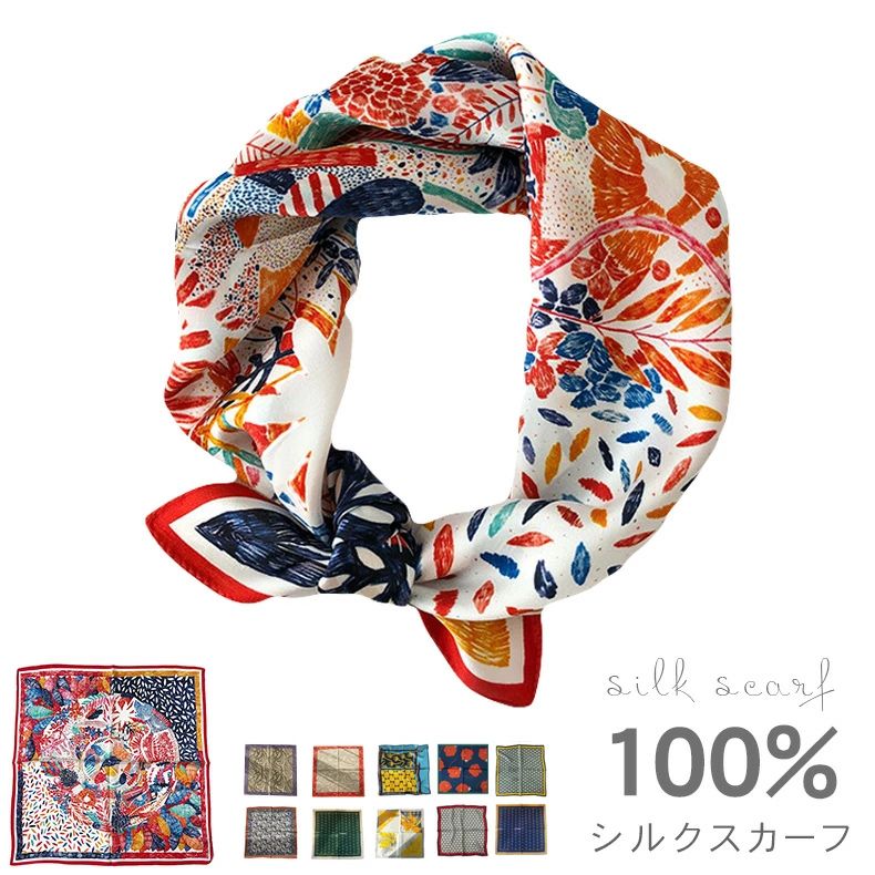 シルクスカーフ レディース 100% 絹シルク 小 正方形 ネッカチー