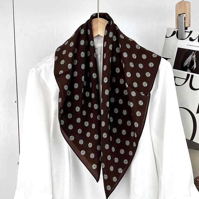 正方形の大判スカーフ。多彩なスタイリングでお洒落を演出する万能アイテム。