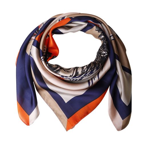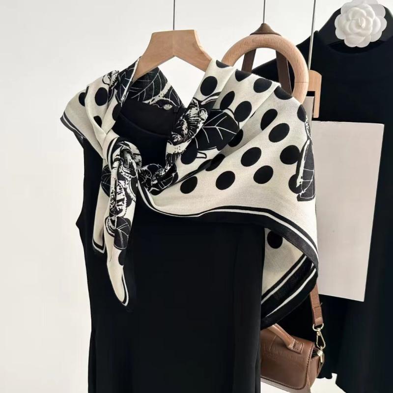 今年もスカーフは大流行!光沢があり、やや固め90cm角シルク調スカーフお勧め。