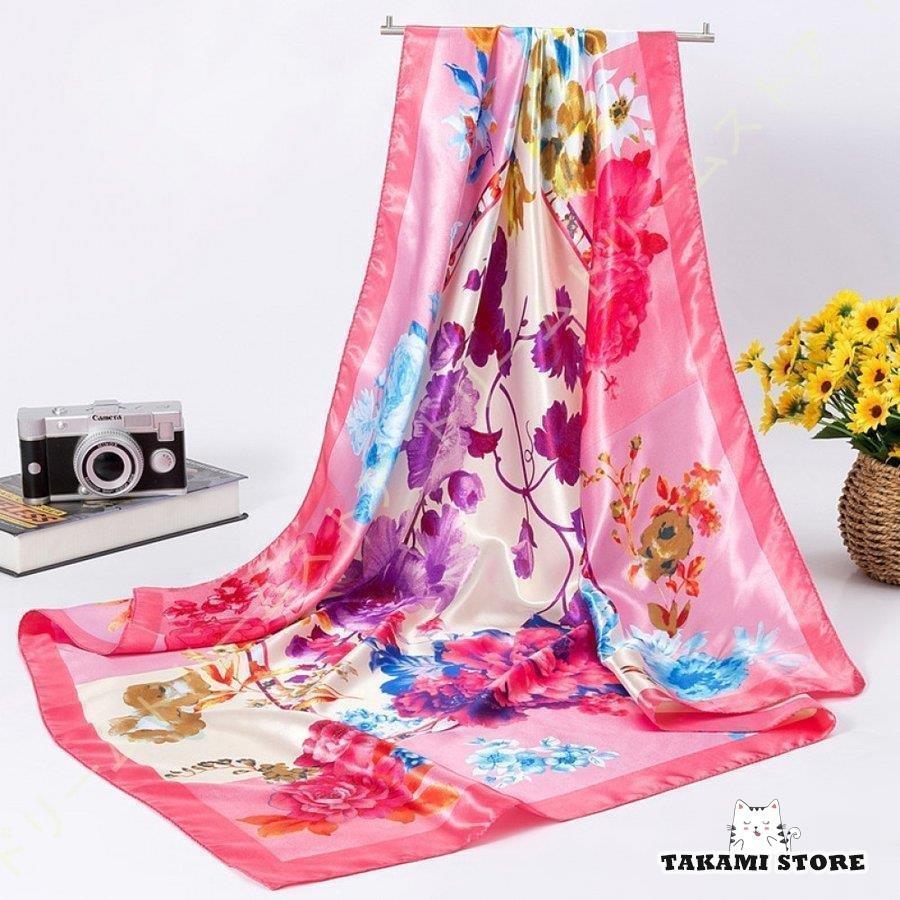 レディース 韓国風 薄手 花柄 スカーフ 90cm 正方形 シルク風 スカーフ 大判 通勤 旅行 バ・・・