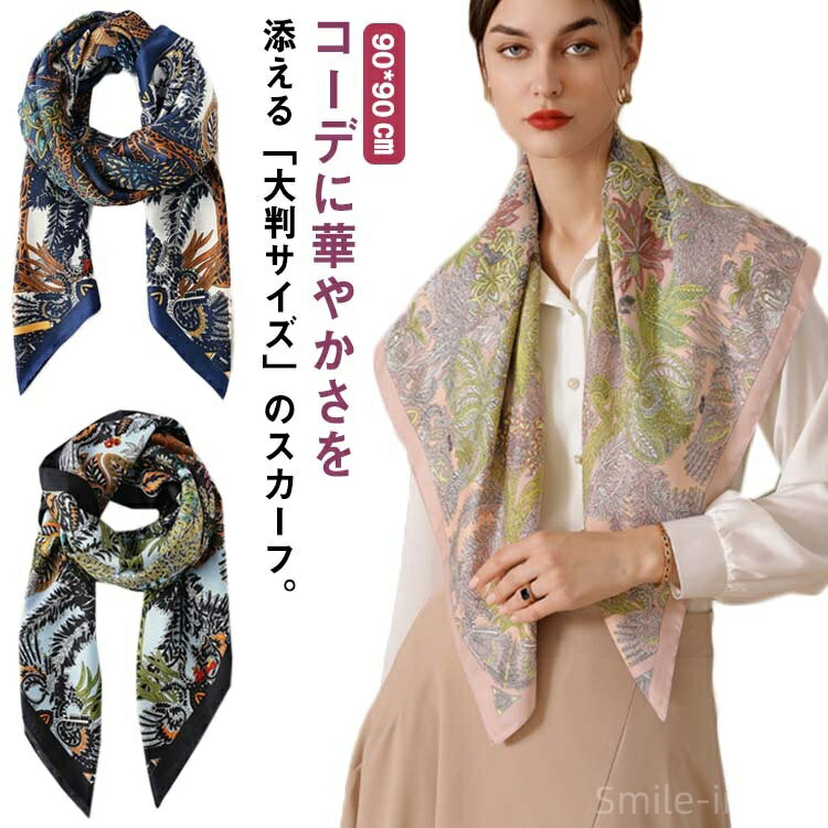 【LINE登録で10%OFF】スカーフ 大判 正方形 90x90cm ストール バンダナ 首巻き 大・・・