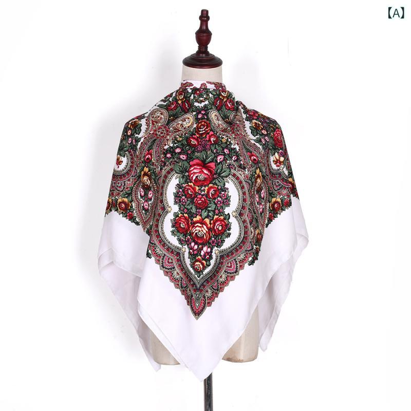 スカーフ レディース 民族風 レトロ調 田園風 大判 正方形 ショール 旅行 防寒 UV対策 日よけ・・・