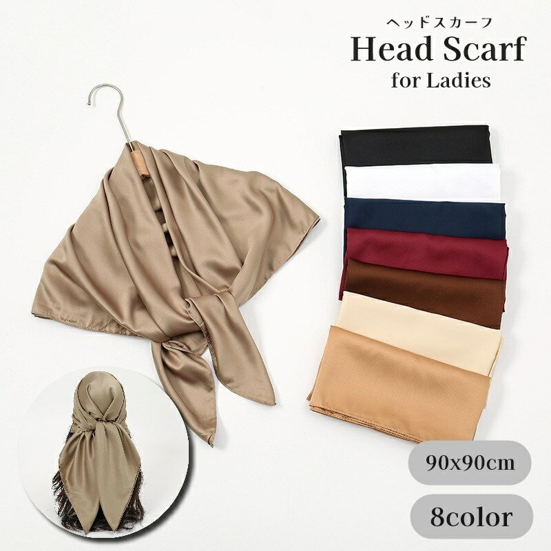 送料無料 ヘッドスカーフ 90×90cm レディース 女性 婦人 サテン調 正方形 大判 ターバン風・・・