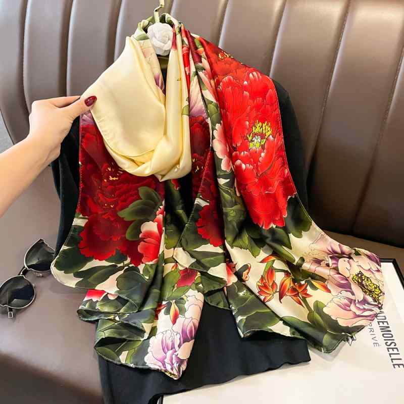 スカーフ レディース 女性用 シルク調 デジタルプリント 花柄 UVカット 日よけ 防塵 大判 正方・・・