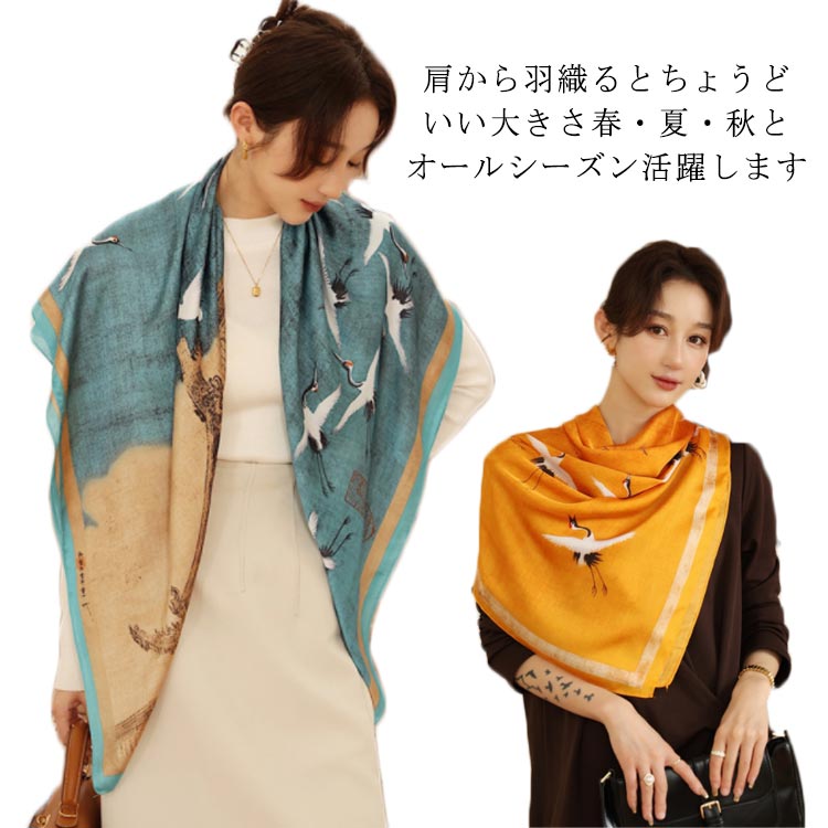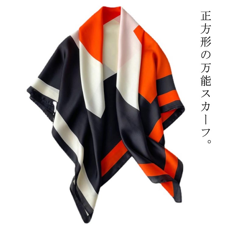 シルクタッチの上品な大判スカーフ、日焼け対策や冷房対策に。デザイン豊富でおしゃれな風呂敷としても、旅行時のコーディネートに活躍。