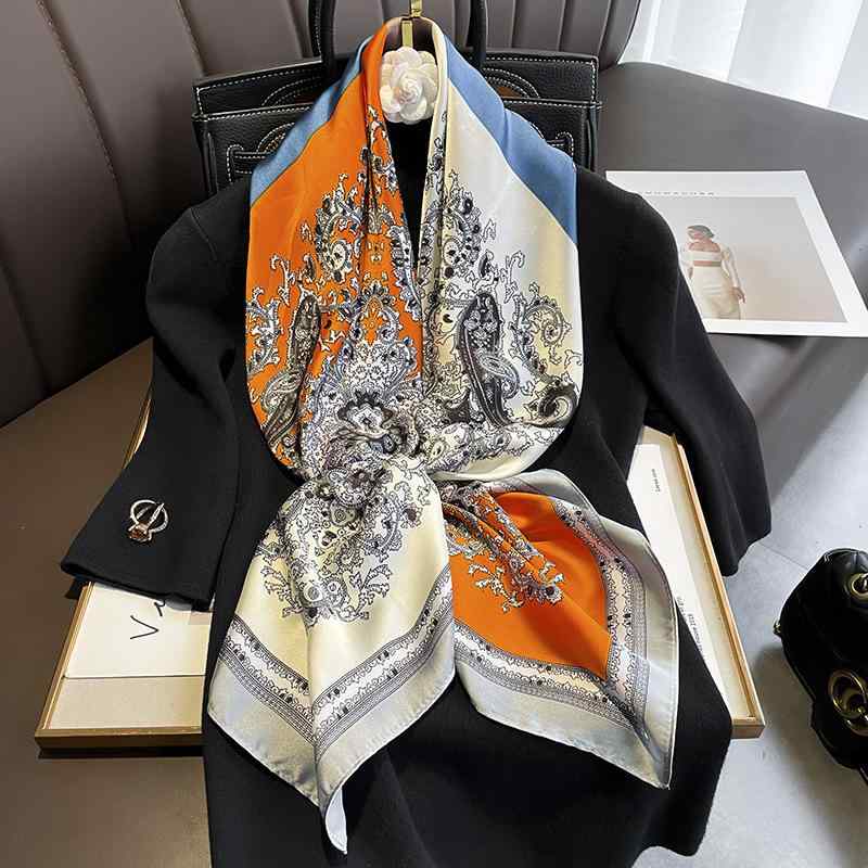 [BRMMMIA]90cmスカーフレディース正方形シルク風スカーフ大判通勤旅行バッグオーナメント用バ・・・