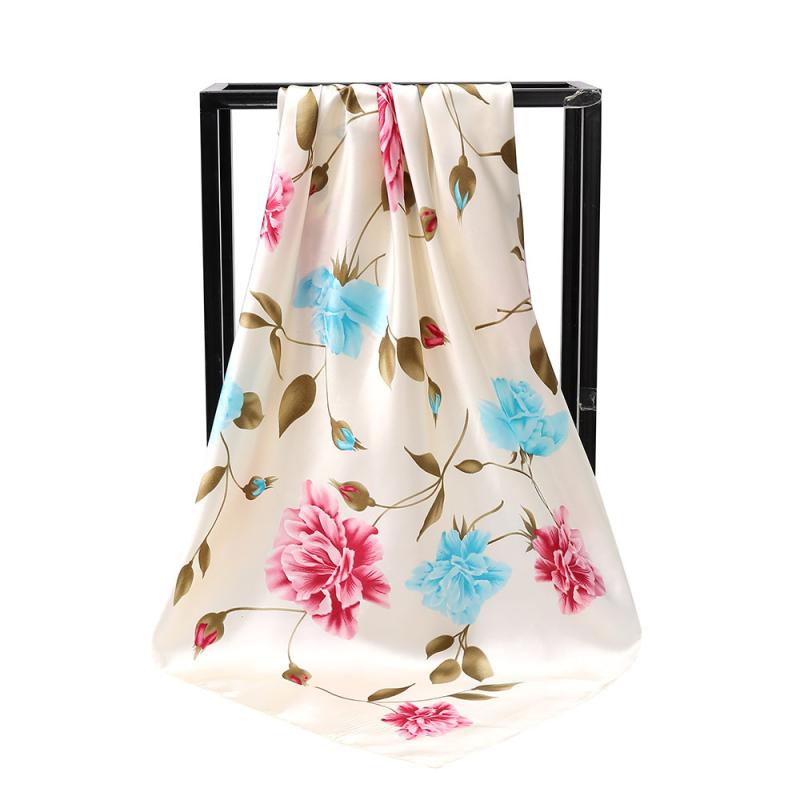 スカーフ レディース サテン調 ポリエステル 花柄 フラワー エレガント 上品 大人 おしゃれ 90・・・