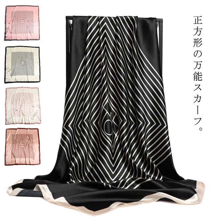 スカーフ シルク風 正方形 スクエアスカーフ ストール ネッカチーフ レディース 薄手 大判 おしゃ・・・