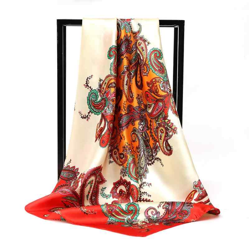 今年もスカーフは大流行!光沢があり、やや固め90cm角シルク調スカーフお勧め。(IJ1〜10)
