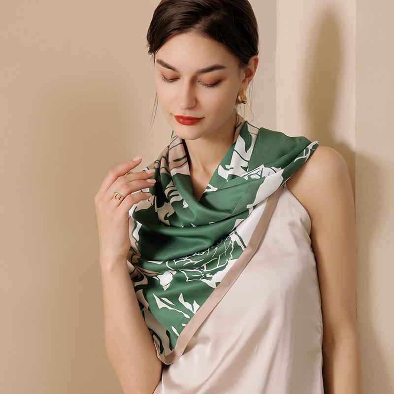 シルクタッチの上品な大判スカーフ、日焼け対策や冷房対策に。デザイン豊富でおしゃれな風呂敷としても、旅行時のコーディネートに活躍。