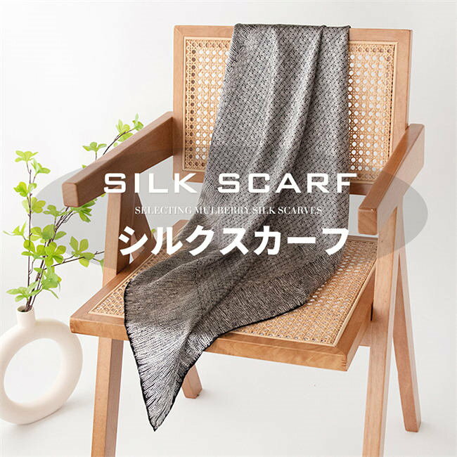 シルク100%証明書取得済。極上の天然素材、シルク100%のスカーフ。日焼けや冷房から華やかに守り、バッグや髪にエレガントなアクセント。
