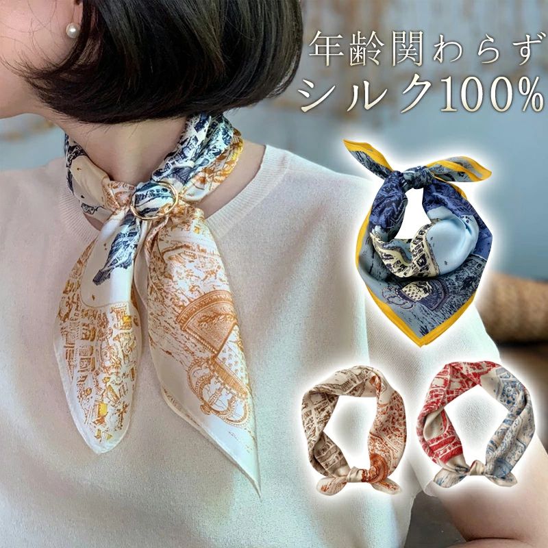 2019.03.02掲載/アイビー調ビンテージのシルクスカーフ復刻版おしゃれで可愛いショールバサッと羽織れる大判正方形スケア83cm×83cm