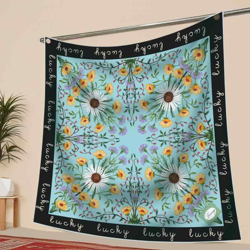 スカーフ レディース 女性用 韓国風 ファッション 万能 着回し 植物 花柄 四つ葉 クローバー 大・・・