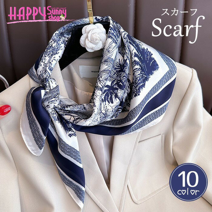 シルクタッチの上品な大判スカーフ、日焼け対策や冷房対策に。デザイン豊富でおしゃれな風呂敷としても、旅行時のコーディネートに活躍。