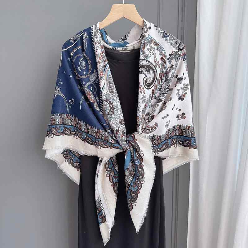 ショール レディース ロシア風 エスニック柄 大判スカーフ 正方形 フリンジ付き ストール マフラー・・・