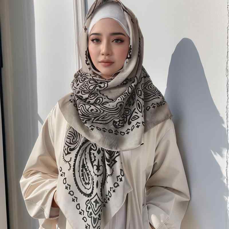 スカーフ マレー インドネシア スクエア 淡色 花柄 プリント ヘム加工 バリ風 正方形 ストール ・・・