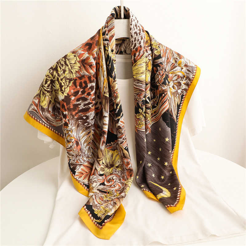 正方形スカーフ レディース 女性用 大判 スクエア柄 シルクタッチ ストール バンダナ バッグスカー・・・