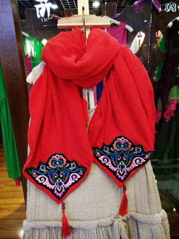 エスニック ストール スカーフ レディース コットン リネン 刺繍 花 タッセル ビーズ ロング 大・・・