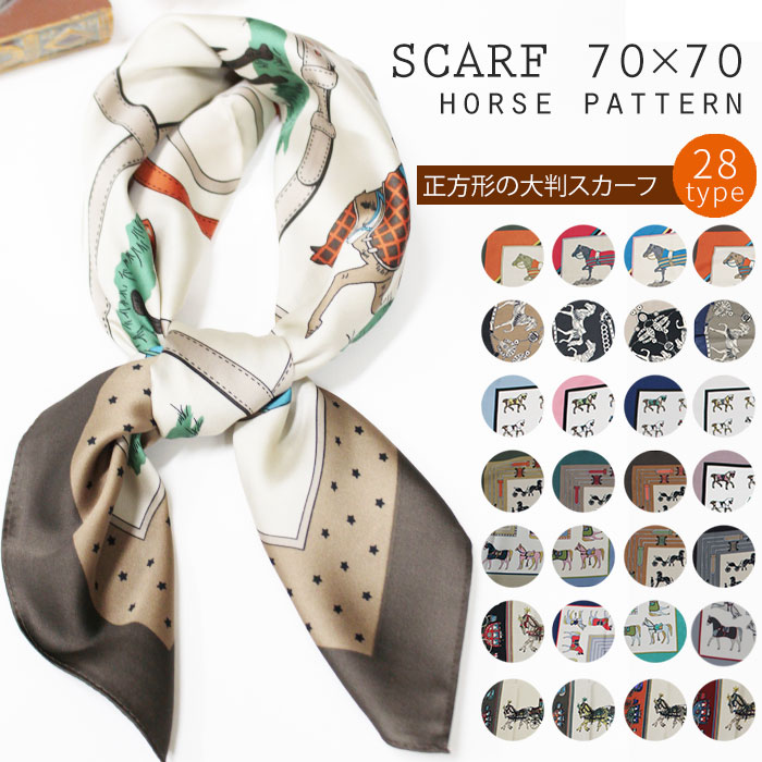 【 新商品 】 アレンジ しやすい 大判 スカーフ 馬柄 上品 馬具 ホース