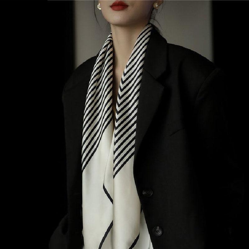 スカーフ 大判ストール レディース オフィス シルクタッチ 正方形 薄手 ショール 米白ストライプ ・・・