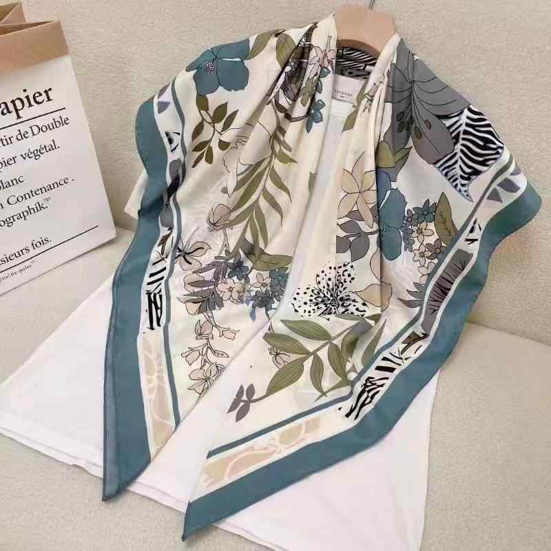 スカーフ レディース 再生繊維 花柄プリント ネック装飾 首元 大判 正方形 バッグアクセ 韓国ファ・・・