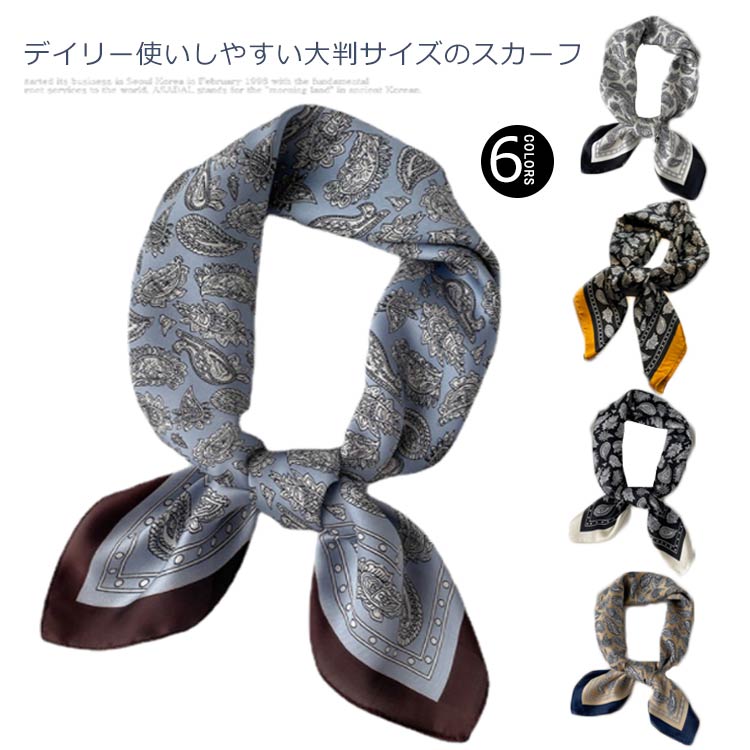スカーフ レディース 正方形 70×70cm ペイズリー柄 サテン風 シルク調 光沢 薄手 大判 首・・・