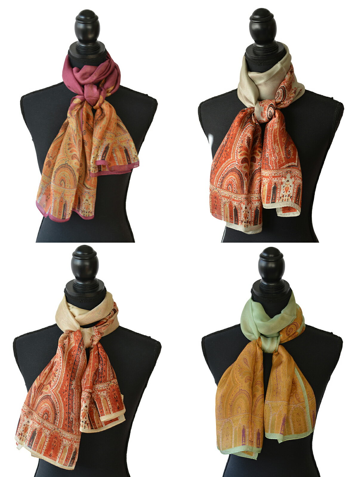 【弊社独自規格,製造,直輸入により中間マージンをカット激安にてご奉仕】 シルク100% 紗織 ゴース 大判 ロング 54CM x 164CM ペイズリープリント オシャレストール 男性にもピッタリ